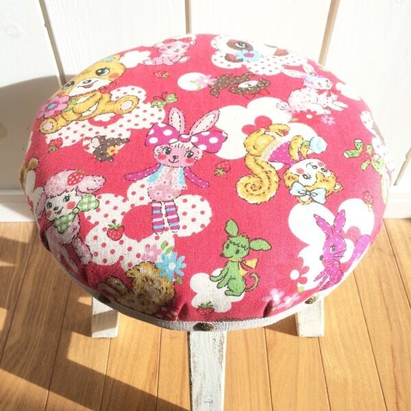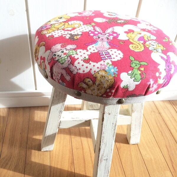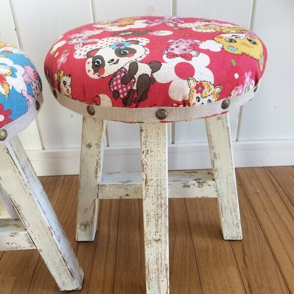 ・かわいいアニマルキャラクター柄の生地を使ったカントリー調の子供用ミニウッドスツールです。