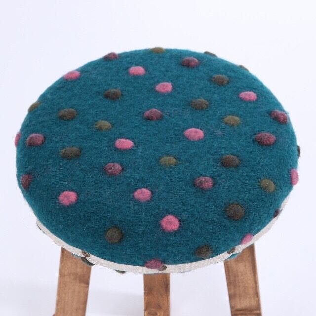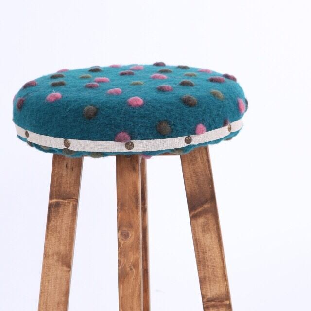 ・モコモコしたドットの生地を使ったウッドスツールです。