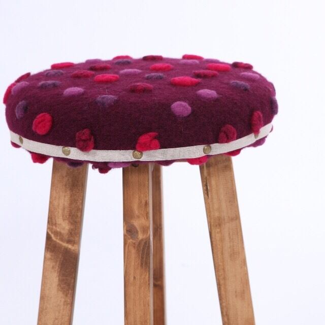・モコモコしたドットの生地を使ったウッドスツールです。